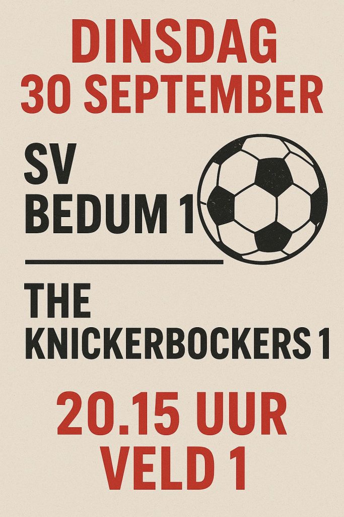 Aanstaande dinsdag speelt SV Bedum 1 tegen The Knickerbockers 1.